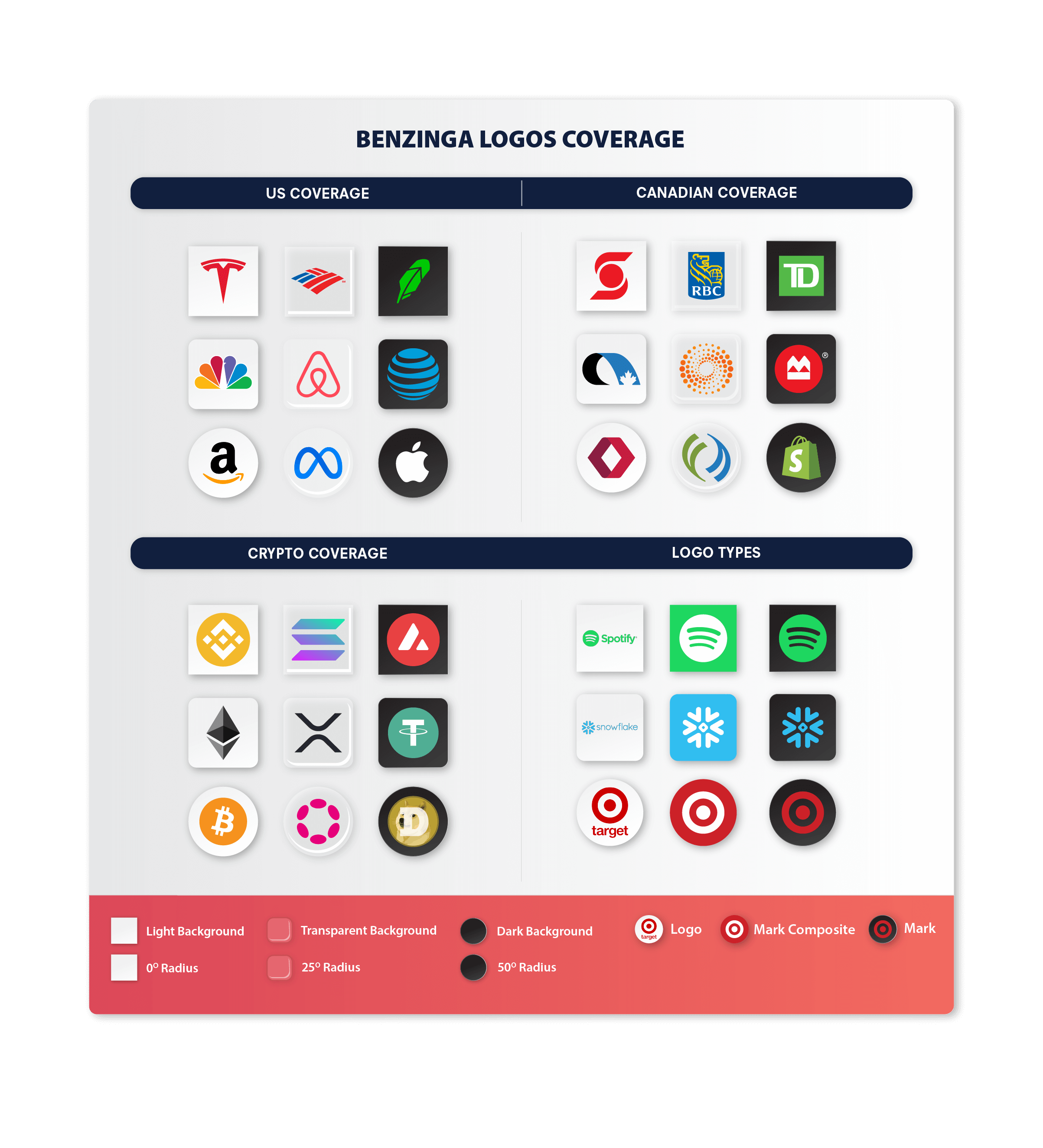 The logo database is constantly monitored and audited to ensure accuracy and up-to-date information. Benzinga provides a 24-hour turnaround for additional database requests and manually reviews every logo added to the database to ensure accuracy.