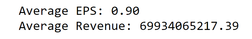 Lastly, we calculate Apple’s average EPS and revenue over the available time period. This provides a broader overview of Apple’s historical performance.